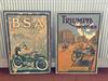 2 X MOTORCYCLE ADVERTISEMENTS MOUNTED ON TIMBER INC. TRIUMPH MOTORS COVENTRY (435X665) & BSA MOTOR BICYCLES In Frame (435x675)